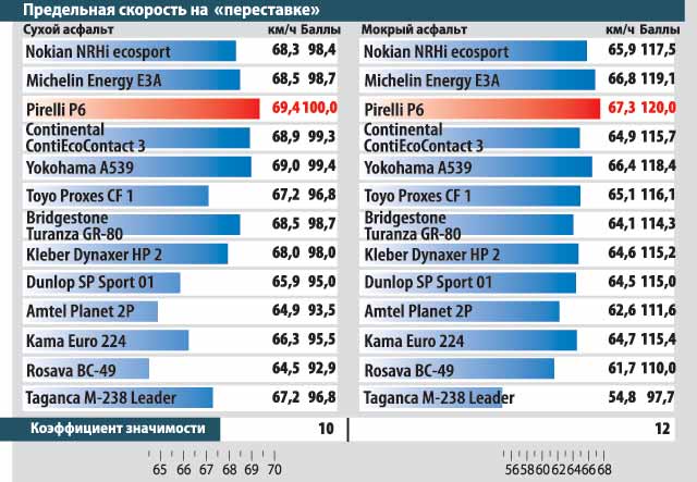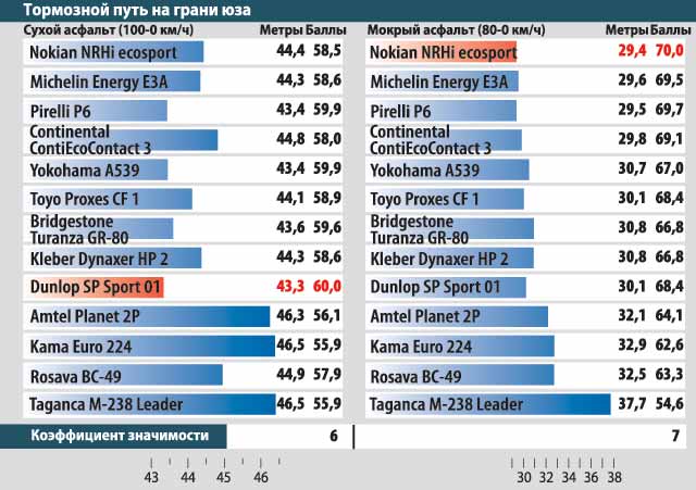 Все шинники, включая российских, борются за стабильность сцепных свойств и их близость на сухом и мокром покрытии. Но достижения не у всех одинаковы. Есть еще одна тенденция, отмеченная и в прошлом году. Улучшение сцепных свойств на асфальте приводит к их ухудшению на грунтовых дорогах и траве. Грибникам, ягодникам и дачникам, живущим в глубинке, стоит присмотреться к шинам категории «m+s».