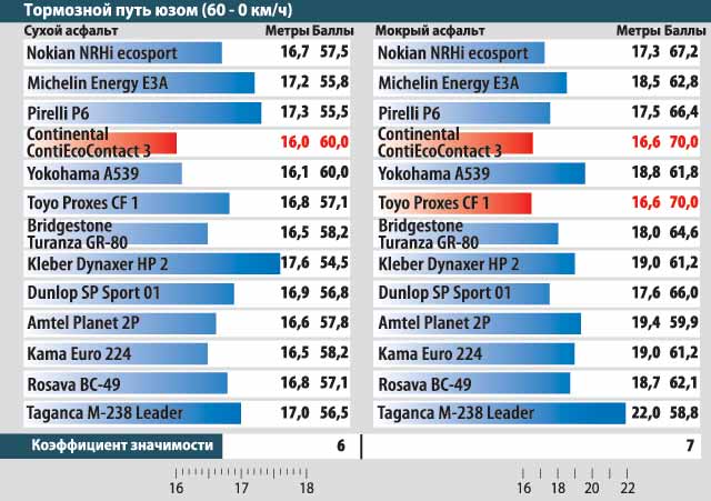 Импортные шины в основном ориентированы на автомобили с ABS, потому менее охотно тормозят юзом. Тем не менее есть и такие, что эффективно тормозят любым способом.