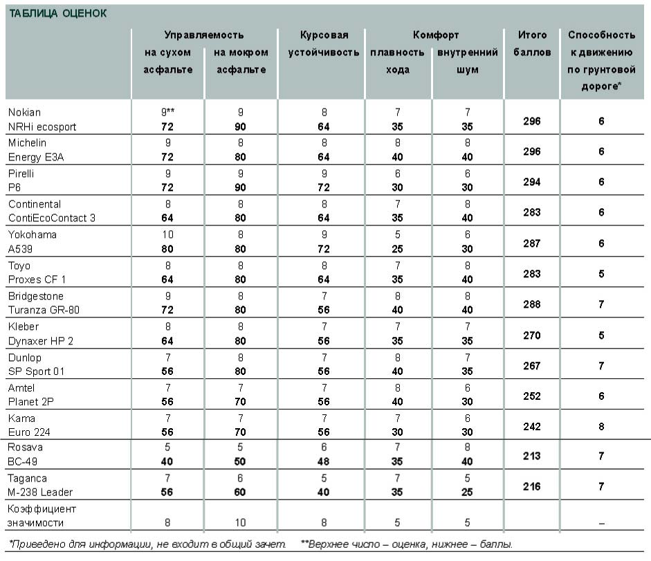 Второе дополнение – по просьбе читателей ввели оценку работы шин на грунтовой дороге. Этот показатель не входит в общий зачет, он служит лишь дополнительной информацией для тех, чьи маршруты проходят не только по асфальту.